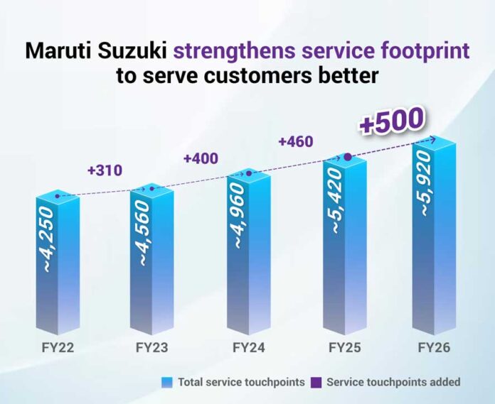 Maruti Suzuki India Limited has expanded its after-sales network by activating a record 502 new service touchpoints during FY 2025-26, marking the company’s highest-ever service network expansion in a single financial year.