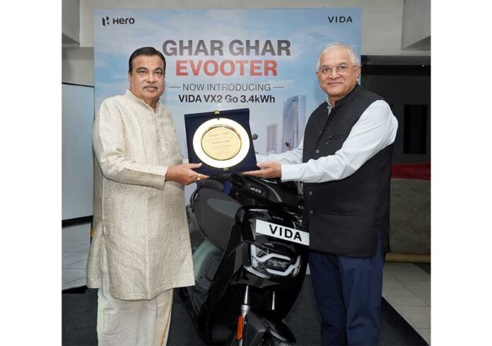 VIDA – powered by Hero MotoCorp – has announced the launch of the new VX2 Go 3.4 kWh variant, expanding its popular VX2 Evooter portfolio. The new model was unveiled by Shri Nitin Gadkari, Hon’ble Union Minister for Road Transport and Highways, reflecting the government’s continued commitment to advancing electric mobility adoption in India.