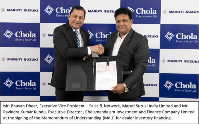 Maruti Suzuki India Limited signed a Memorandum of Understanding (MoU) with Cholamandalam Investment and Finance Company Limited (Chola), the financial services arm of Murugappa Group, to facilitate inventory financing for its dealer partners. The new alliance will empower 3,600+ Maruti Suzuki dealerships across the country with comprehensive inventory funding options for their working capital requirements.