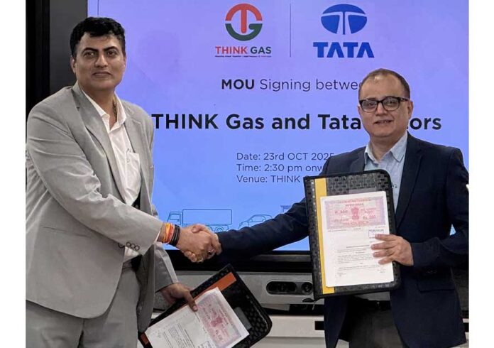 Tata Motors, India’s largest commercial vehicle manufacturer, has entered into a Memorandum of Understanding (MoU) with THINK Gas, a leading City Gas Distribution company, to strengthen the LNG (Liquefied Natural Gas) refueling infrastructure for long-haul and heavy-duty trucks in India.