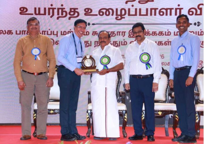The award, instituted by the Directorate of Industrial Safety and Health (DISH), Government of Tamil Nadu, was presented by Thiru C.V. Ganesan, Hon’ble Minister for Labour Welfare & Skill Development, along with Mr. Anand, Director of Industrial Safety & Health. The honour was received on behalf of HMIL by Mr. Mukundan M.S., Vice President – Production, and Mr. Senthil Kumar R.M., Associate Vice President – Safety & Wellness.