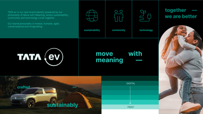 MOVE WITH MEANING: The word “move” captures how the company is in the business of mobility but also acts as a launchpad to think of this new brand identity as a collective human movement towards EVs, and towards a Safer, Smarter, Greener future. The words “with meaning” build on the intent – they power up what TATA.ev stands for with a clear focus on responsibility, collective action, and future readiness.