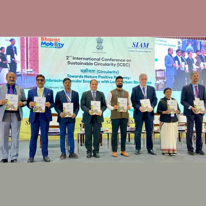 Society of Indian Automobile Manufacturers (SIAM), under its Circularity initiative, organized the 2nd edition of International Conference on Sustainable Circularity (ICSC), themed “Towards Nature Positive Pathway: Embracing Circular Economies with Low Carbon Strategies” on the last day of the Bharat Mobility Global Expo 2024. In accordance with the initiative’s goal of promoting the circular economy, this conference aimed at bringing together industry stakeholders and government representatives at the highest level to deliberate on pathways to an automotive circular economy in India.