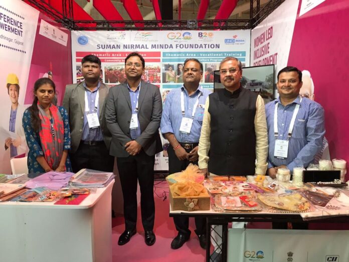 Uno Minda Group’s philanthropic and CSR arm (Suman Nirmal Minda Foundation), which works under the thematic areas of Education, Skill Development, Preventive and Curative healthcare, and community development and wellbeing, participated in the G20 Ministerial Conference on Women’s Empowerment. The conference was organized by the Ministry of Women and Child Development, GoI and CII at Gandhinagar, Gujarat, from August 2–4, 2023. The event was inaugurated by Smt. Smriti Irani, Hon’ble Minister of Women and Child Development and Minority Affairs and Shri Bhupendrabhai Patel, Hon’ble Chief Minister of Gujarat. The CSR wing demonstrated and exhibited the various women-led inclusive development projects towards inter-generational transformation.