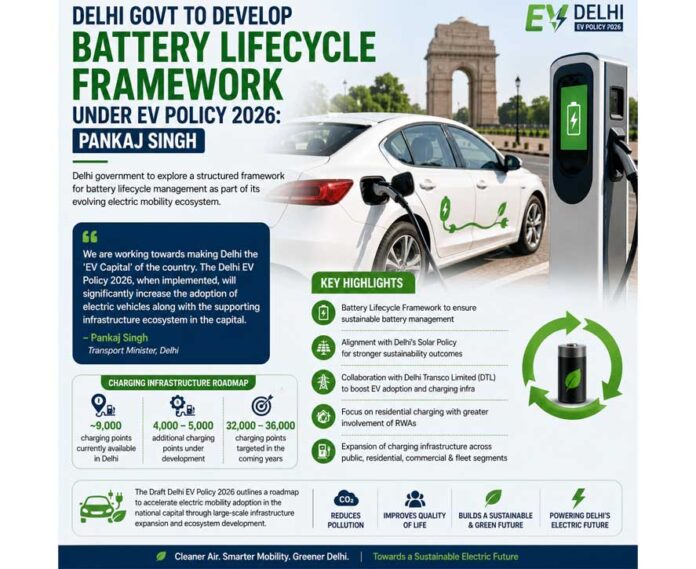 The Delhi government will explore a structured framework for battery lifecycle management as part of its evolving electric mobility ecosystem under the Draft Delhi EV Policy 2026, Transport Minister Pankaj Singh said on Friday during a stakeholder consultation.