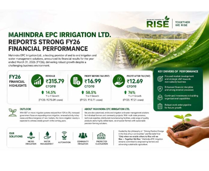 Mahindra EPC Irrigation Ltd. has announced its financial results for the year ended March 31, 2026 (FY26), delivering robust growth despite a challenging business environment.