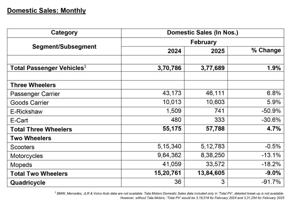 Commenting on the February 2025 performance, Rajesh Menon, Director General of SIAM, stated, “The Passenger Vehicles segment remained resilient, recording its highest-ever February sales at 3.78 lakh units, reflecting a 1.9% growth over February 2024. The Three-Wheeler segment also performed well, growing 4.7% year-on-year with sales of 0.58 lakh units. However, Two-Wheeler sales declined by 9% to 13.85 lakh units. With the upcoming festivities of Holi and Ugadi in March, demand is expected to remain strong, helping FY 2024-25 conclude on a positive note.