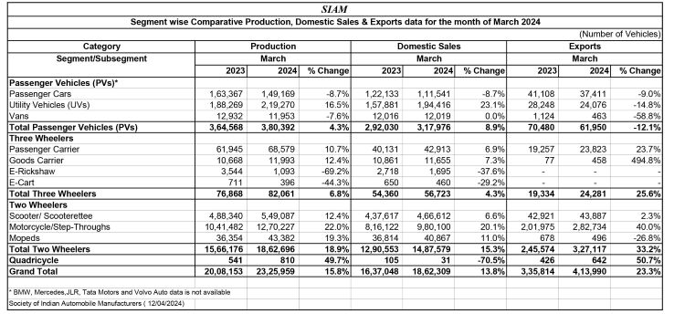 The Society of Indian Automobile Manufacturers (SIAM) released data today revealing a surge in domestic vehicle sales for the financial year 2023-24.